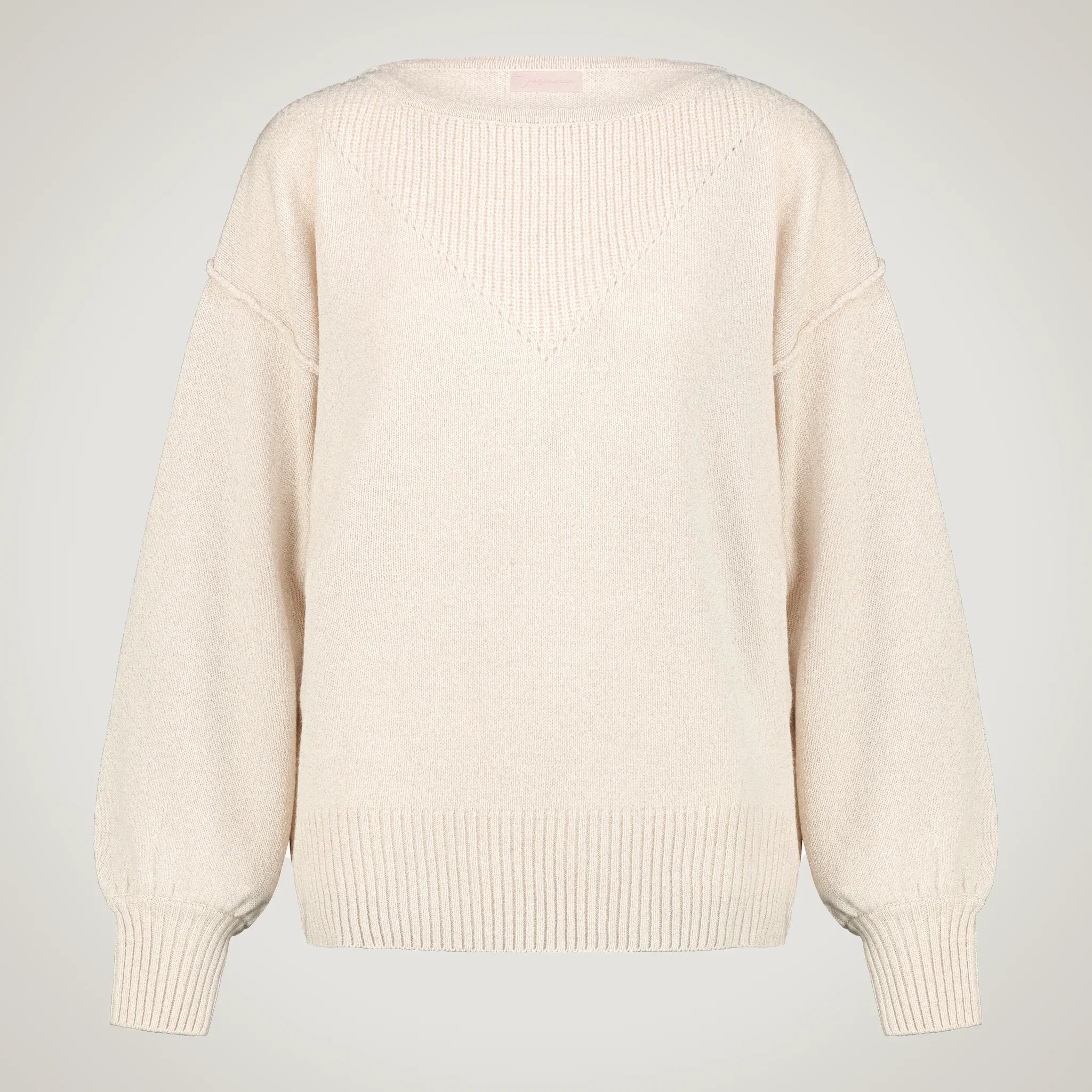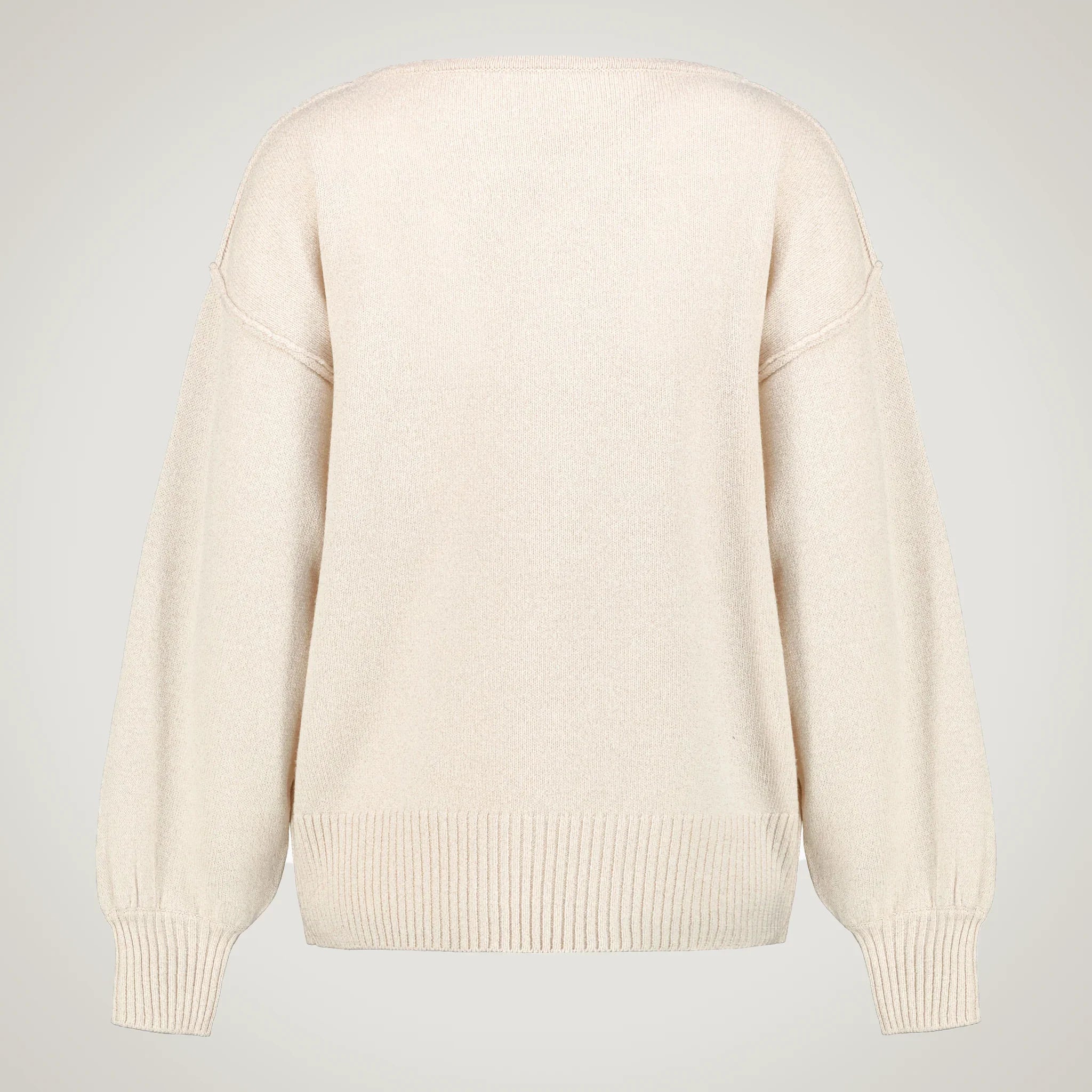Every Tresamie garment, like Oversized sweater with wide neckline on the sides and puffed sleeves in 100% merino wool , is born from a concrete commitment to sustainability and responsible quality . In the composition of the product (as in this case 100% Extrafine Supergeelong Merinos ), we use exclusively certified yarns from selected Italian suppliers, with full respect for the environment and the people who produce them. Our supply chain is entirely Italian , from yarn to packaging, to guarantee traceability, emissions reduction, and the valorization of local artisanal skills. We believe in conscious luxury, made of noble materials, ethical workmanship, and lasting beauty.
