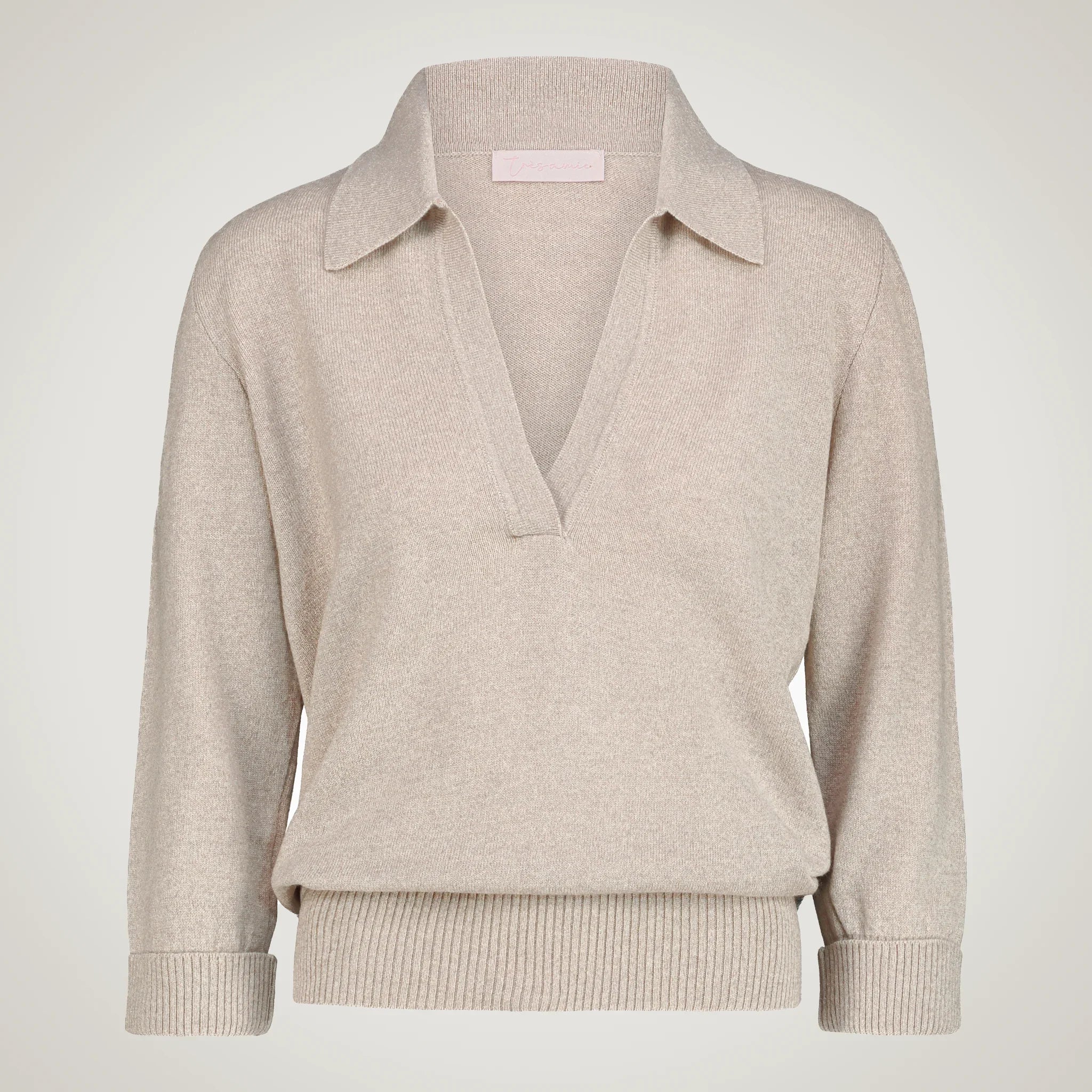 Slim-fit 3/4-sleeve polo shirt with turn-up in merino wool, silk and cashmere