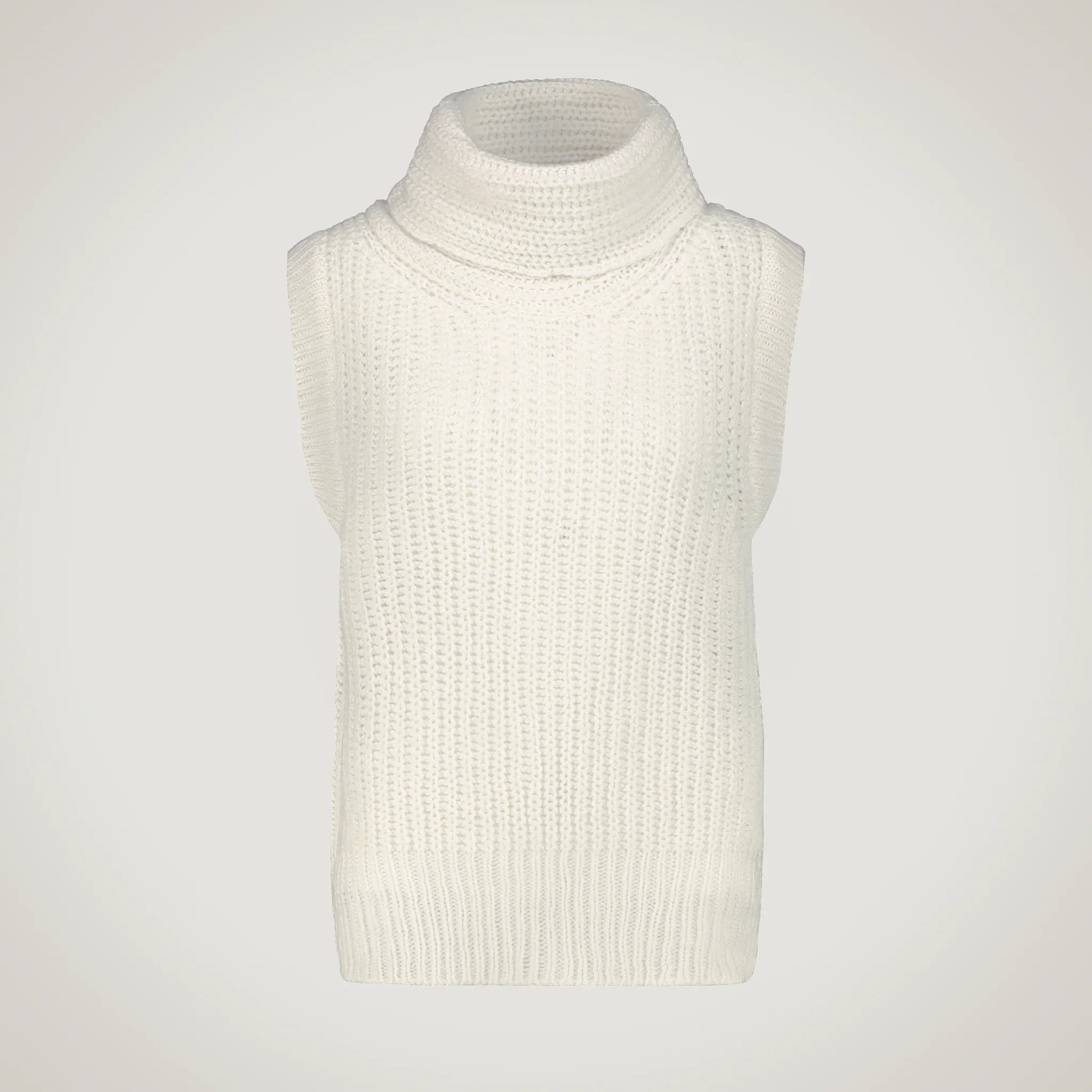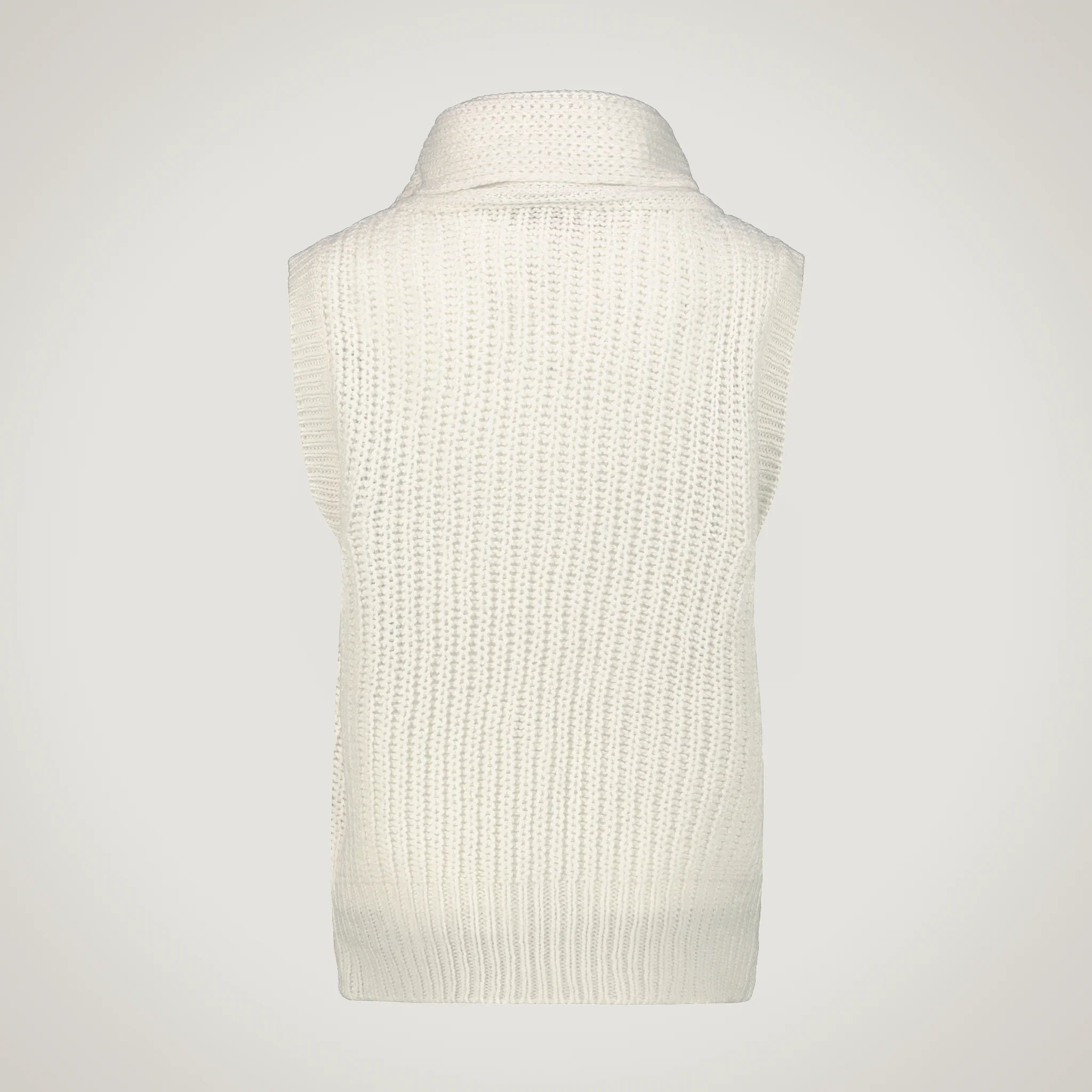 Semi-oversized sleeveless sweater with wide collar in 100% merino wool