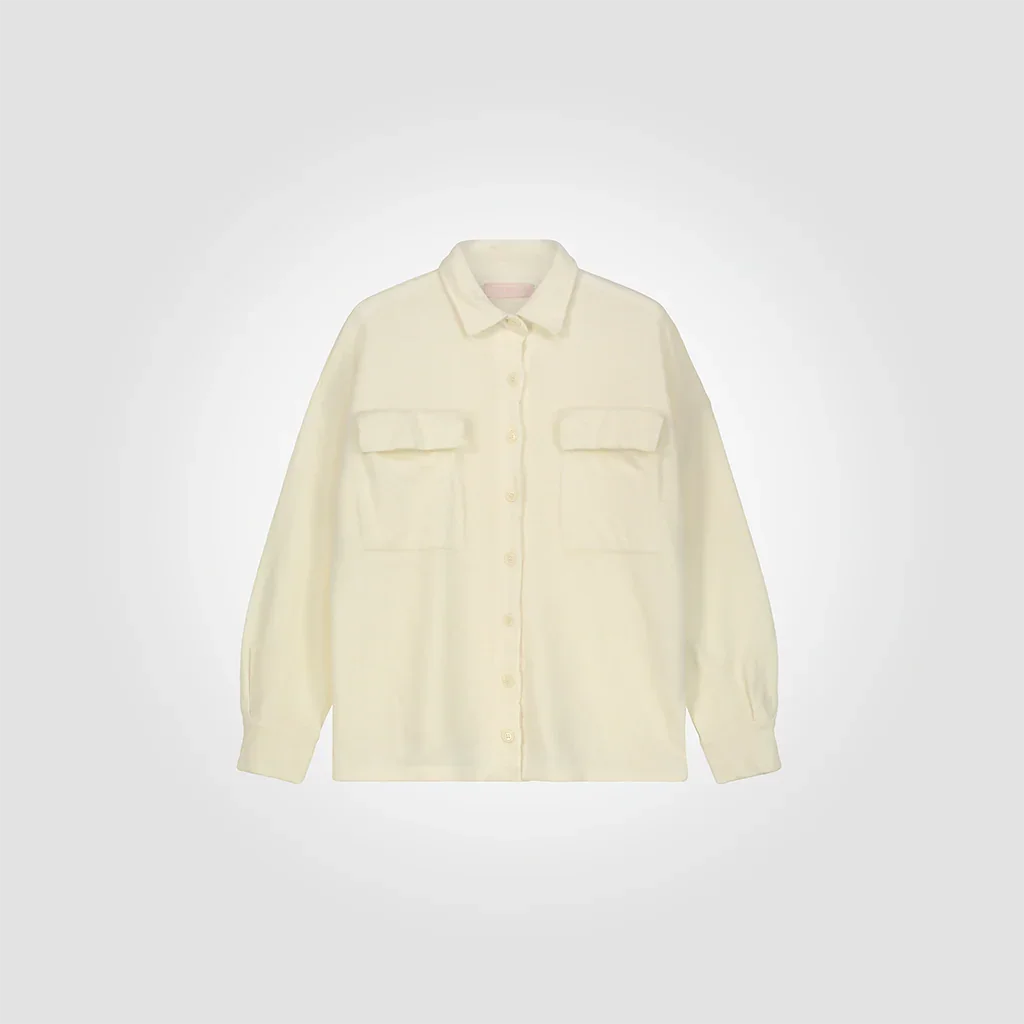 Camicia ampia con collo camicia e tasche frontali 100% lana merino