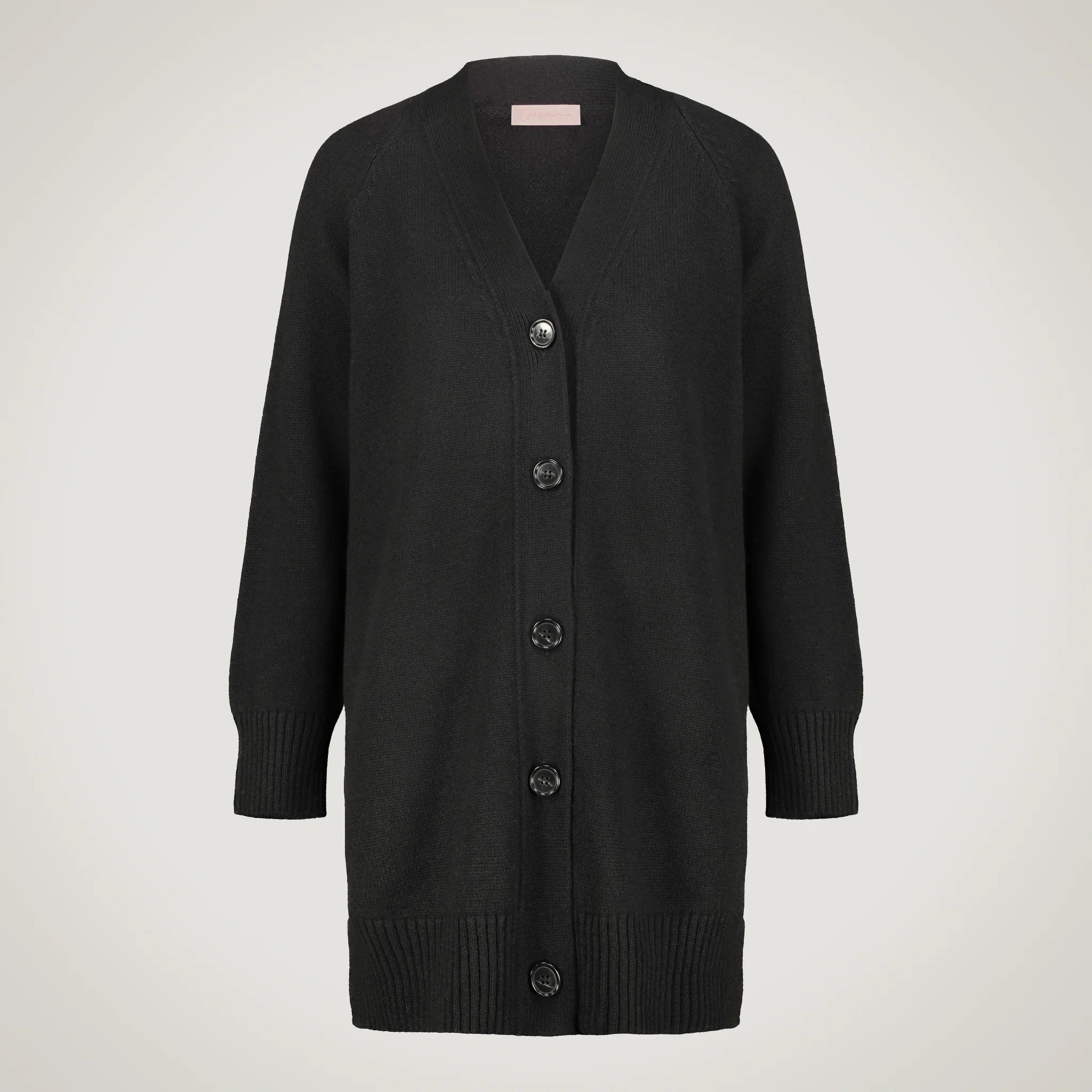 Cardigan oversize con spacchetti laterali media lunghezza 100% lana merino